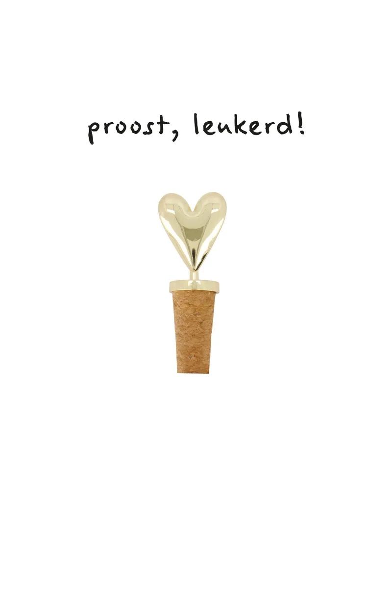 Deze flessenstop is afgewerkt met een gouden metalen hartje, dit zorgt meteen voor een feestelijke toets aan tafel.
